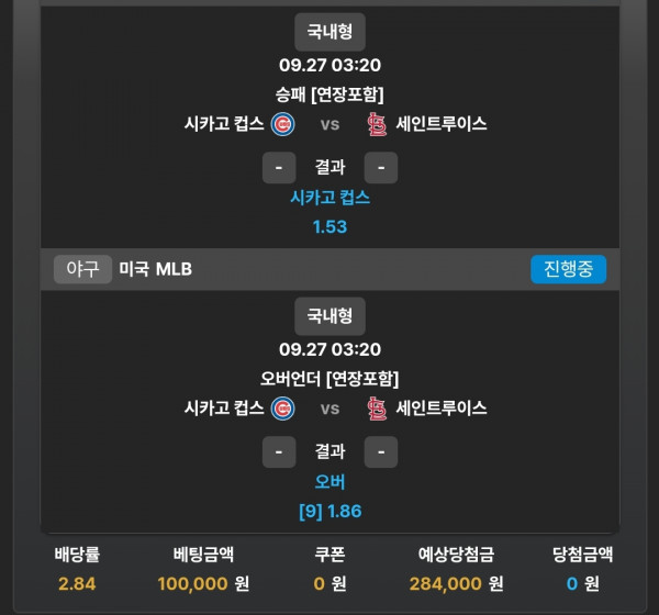 | 2 |  시카고C | 148 | 84 | 0 | 64 | 7 |