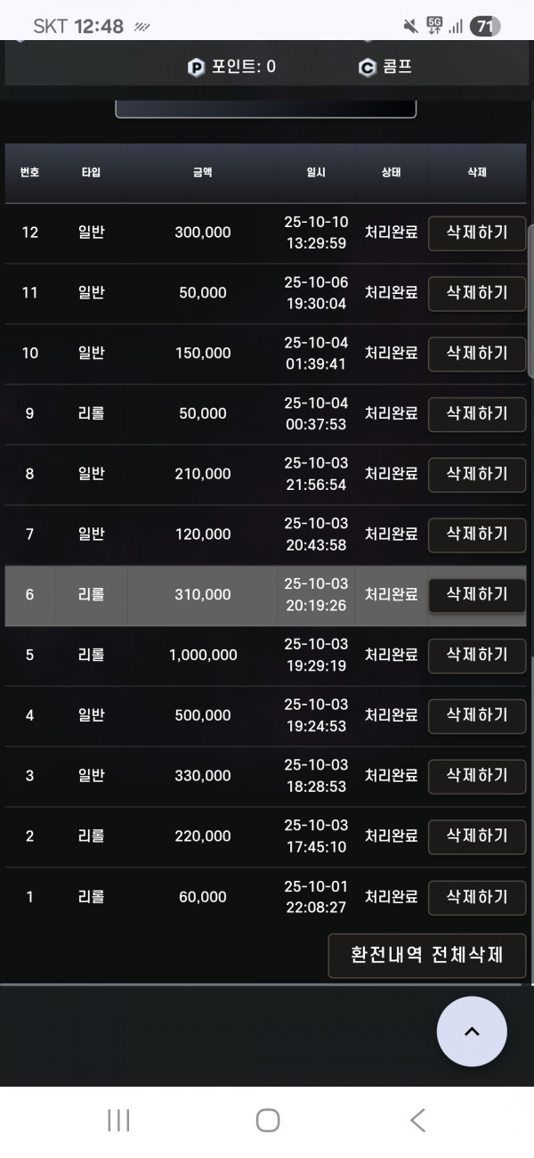 그리고 충환 엄청빠르고 정산신청이나 지인정산 개인롤링도 혼자 이용하기좋고 잘될땐 몇천이상씩도 1분만에 환전 잘나왔네요