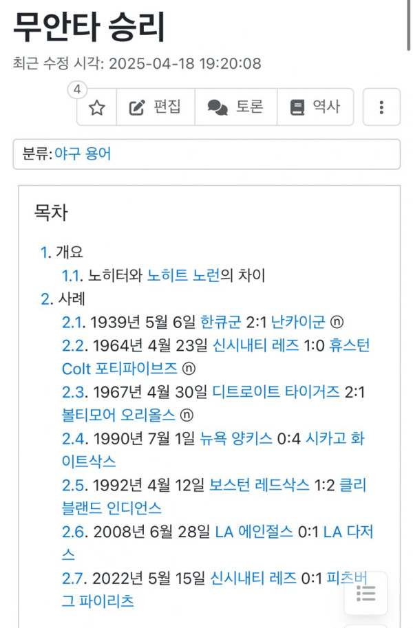 | 1 |  클리블랜드 | 162 | 88 | 0 | 74 | 0 |